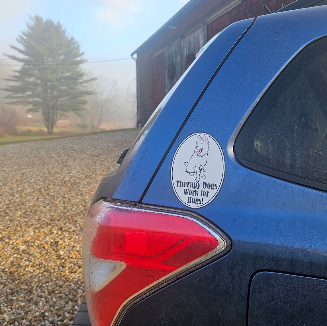 click image to enlarge Product Information Put this 5"x7" oval car magnet on your vehicle when you take your Berger Blanc Swiss Shepherd on therapy dog visits! Purchase Price: $14.95 Qty: Add to Cart