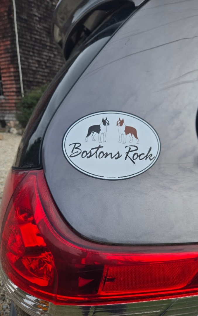 click image to enlarge Product Information This cute car magnet comes with your choice of oval size and color of the Bostons. Available Options Boston Color Options: one black and white, one brown and white both black and white both brown and white oval size options: 5"x7" 7"x11" (+$15.00) Purchase Price: $14.95 Qty: Add to Cart