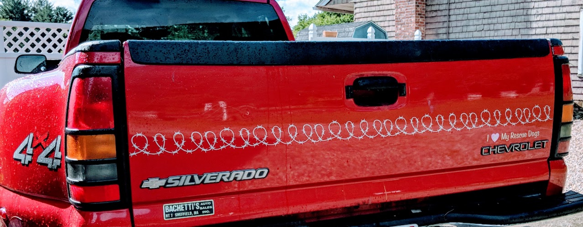 click image to enlarge Product Information Dress up your tailgate, windows, mailbox, tack box or walls with our curly barbed wire decals! Each piece measures 3"x12" and comes in a variety of glitter colors! In the photo it is shown in glitter silver. Available Options Glitter Colors No Extra Cost: glitter black glitter blue glitter brown glitter gold glitter green glitter pink glitter purple glitter red glitter silver glitter teal Purchase Price: $10.00 Qty: Add to Cart