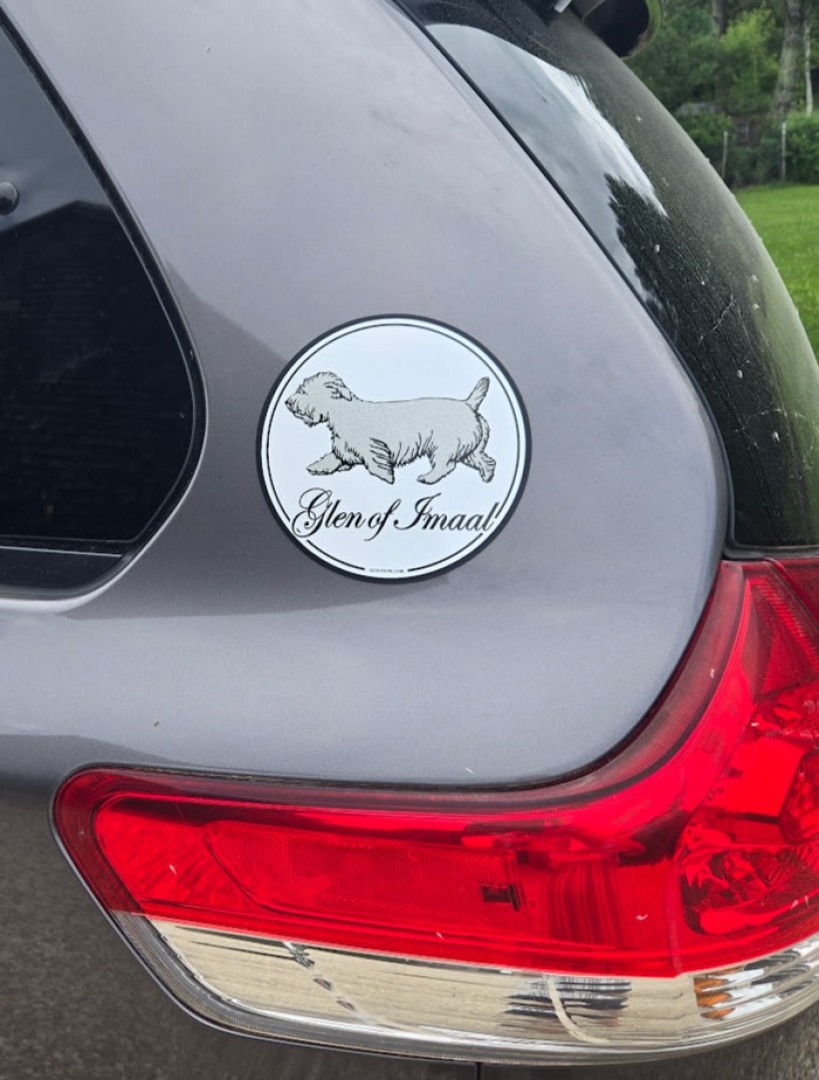 click image to enlarge Glen of Imaal breed magnet Product Information Glen of Imaal Breed Magnet This beautiful magnet featuring a Glen of Imaal looks fantastic on any color vehicle. It measures 6" round. Select the color and direction the Glen should face. Available Options direction: facing left facing right Glen Colors: glitter silver glitter gold (wheaten) Purchase Price: $15.00 Qty: Add to Cart