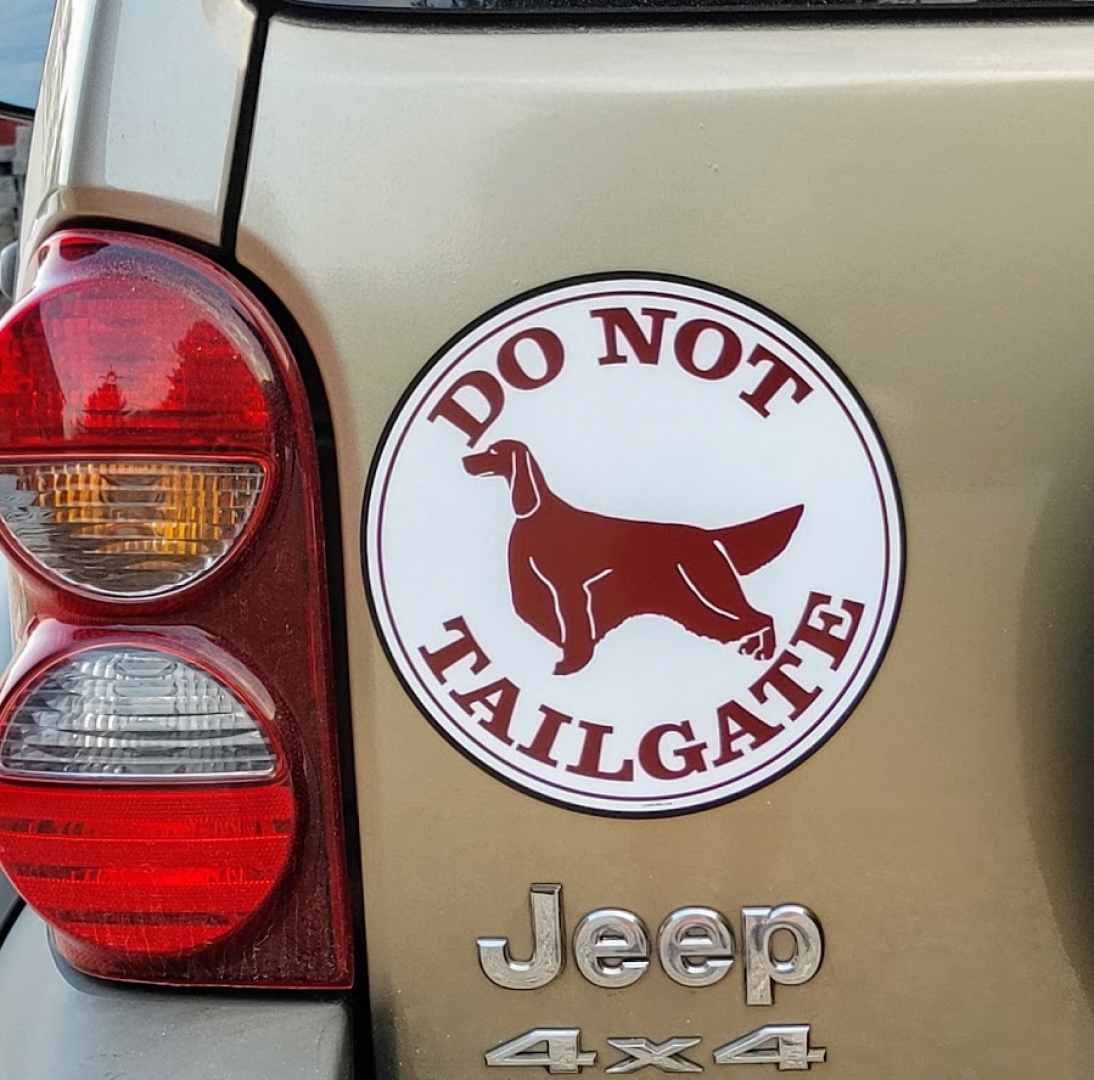 click image to enlarge Product Information This 9" round magnet stands out on a tailgate and lets others know not to follow closely. Select color scheme below. The photo shows burgundy on white. If you prefer a different breed, please email us. Available Options direction: facing left facing right Do Not Tailgate Vehicle Magnet Color Options: black on white burgundy on white black on silver Purchase Price: $19.95 Qty: Add to Cart