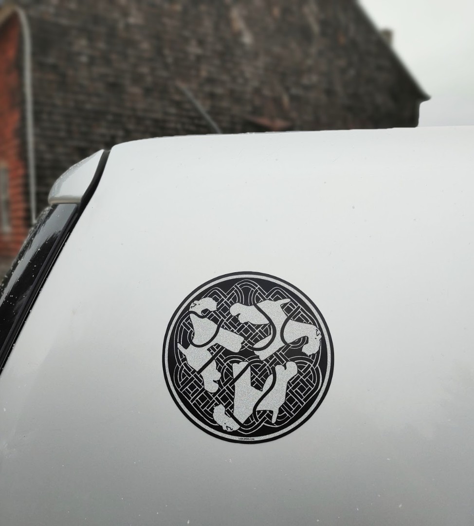 click image to enlarge Product Information This 6" round Celtic Kerry vehicle magnet is really elegant and makes such a thoughtful gift. The Kerries are done in glittery silver. Select the background color below. Available Options Kerry Celtic Background Colors: black dark blue hunter green purple red burgundy Purchase Price: $15.00 Qty: Add to Cart