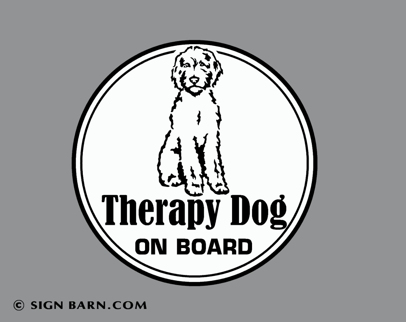click image to enlarge Product Information Add this THERAPY DOG magnet to your car when you go on therapy visits with your Labradoodle! The magnet is 6" in diameter. Purchase Price: $12.95 Qty: Add to Cart