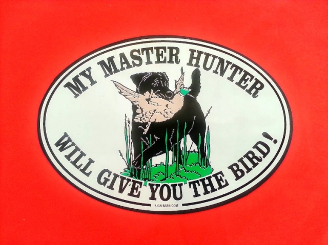 click image to enlarge Labrador Retriever My Master Hunter Product Information Labrador Retriever, My Master Hunter Will Give You the Bird!This delightful decal or magnet (select below) measures 5"x7" and comes with your choice of a black, yellow or chocolate Lab. Available Options 5x7 Decal/Magnet in color: decal magnet (+$4.00) Labrador Colors: black chocolate yellow Purchase Price: $11.00 Qty: Add to Cart