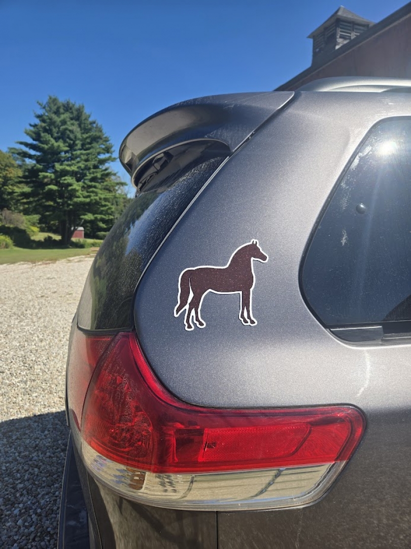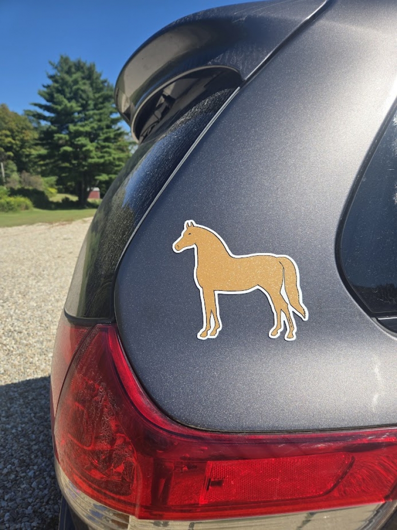 click image to enlarge Product Information Morgan Horse Magnet Beautiful, sparkly Morgan Horse vehicle magnet measuring 6" wide. Colors are available below. This looks great on any color vehicle. Larger sizes are available. Please contact us with your desired size. Available Options direction: facing left facing right Glitter Colors No Extra Cost: glitter black glitter blue glitter brown glitter gold glitter green glitter pink glitter purple glitter red glitter silver glitter teal Purchase Price: $15.00 Qty: Add to Cart