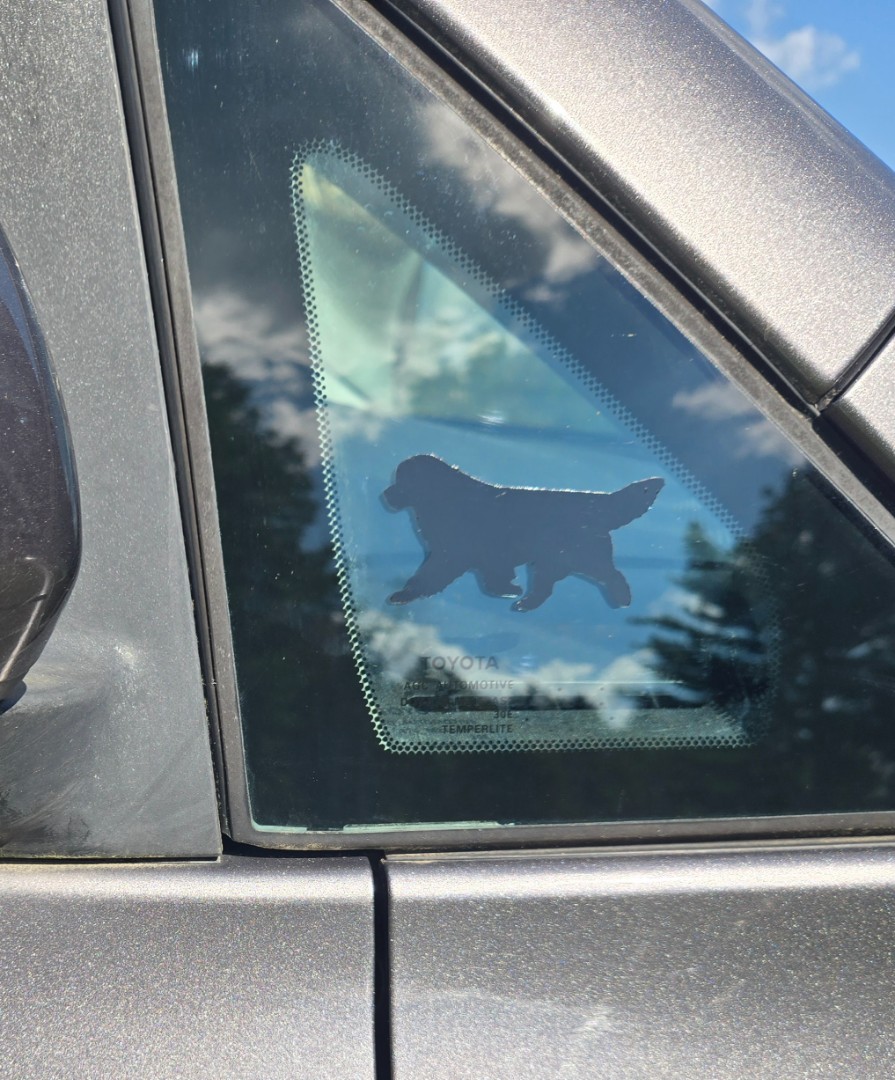 click image to enlarge Product Information In the photos, the black Newfy decal measures 1.5"x3", and the Landseer measures 2.5"x5". Select the size you desire along with the color of the Newfy and the direction the dog should face. Available Options Newfoundland Decal Size Options: 1.5"x3" 2.5"x5" (+$4.00)3.5"x7" (+$6.00)4.5"x9" (+$8.00)5.5"x11" (+$10.00)6.5"x13" (+$12.00)7.5"x15" (+$14.00) direction: facing left facing right Newfoundland colors: black and white (Landseer) solid black solid brown brown and white (Landseer) Purchase Price: $3.95 Qty: Add to Cart