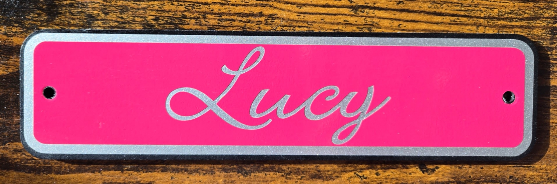 If you have a dog, horse, daughter, granddaughter named Lucy, this is a perfect gift. There are minor scrapes on the back of the sign from wear and tear.